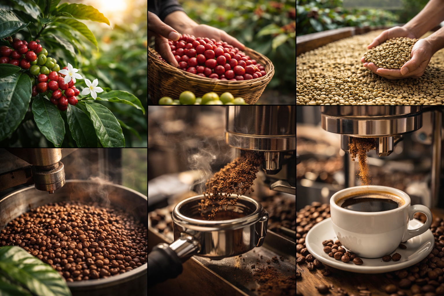 Pražení je největší alchymie kávy. Zelené zrno se teplem promění v aromatický „nosič“ chutí – oříšky, čokoláda, karamel, květiny, ovoce. Pražení ovlivňuje: