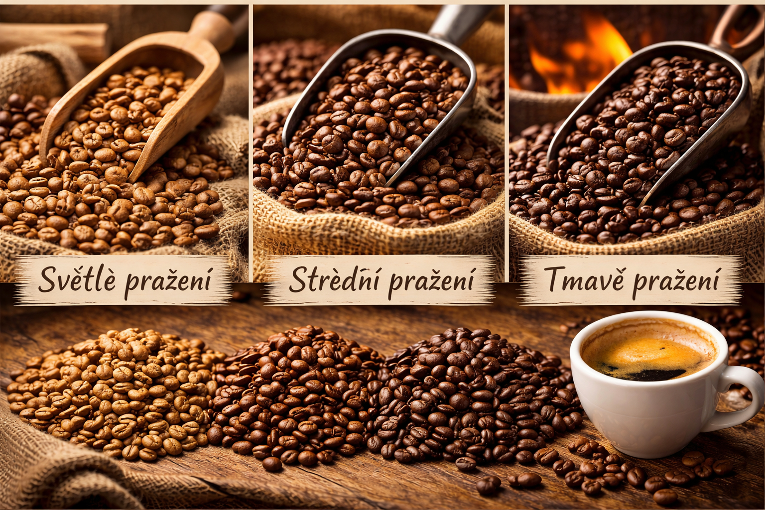Závěr: pražená káva je výsledkem řemesla i volby stylu. Světlé pražení zdůrazní původ a aromatiku, střední pražení nabídne univerzální vyváženost a tmavé pražení přinese klasickou intenzitu s výrazným tělem. Jakmile pochopíte, co vám vyhovuje a pro jakou přípravu kávu chcete, výběr se výrazně zjednoduší. Na prodejkavy.cz dává smysl vybírat praženou zrnkovou kávu podle metody přípravy (espresso, filtr, moka, automatický kávovar) a podle chuťového profilu (čokoládová, oříšková, ovocná, jemná či výrazná). Správně zvolená a čerstvá pražená káva je totiž nejrychlejší cesta k tomu, aby každá šálka chutnala tak, jak má.