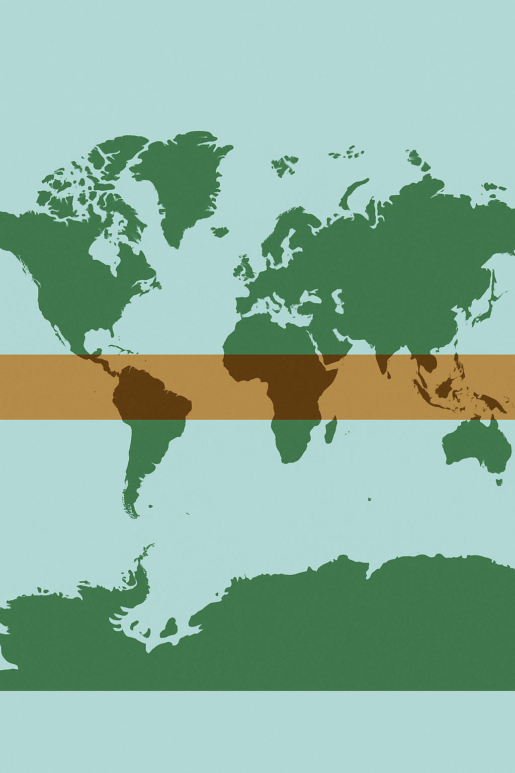 Tento pás zahrnuje více než 70 zemí, které mají ideální podmínky pro růst kávovníku: