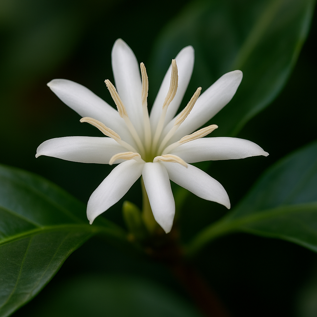 Kávovník – stálezelený keř, který kvete jako jasmín